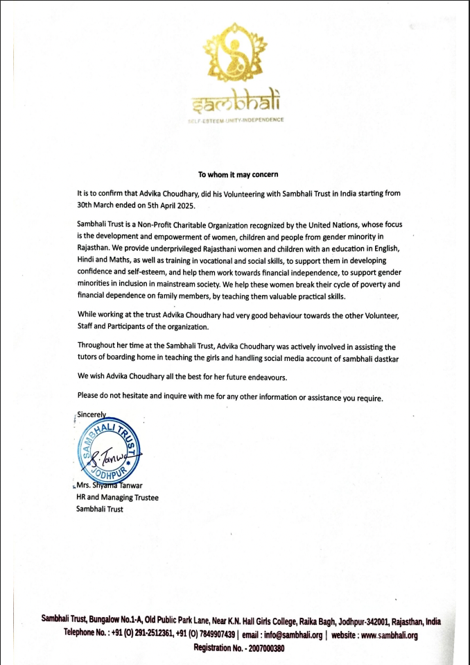 I collaborated with Sambhali Trust, a UN-recognized NGO empowering marginalized women and children, to launch my initiative ‘Come, Let’s Learn!’. Together, we created workshops and mentorship programs that built academic confidence and encouraged leadership, curiosity, and self-belief among young girls and women./p>